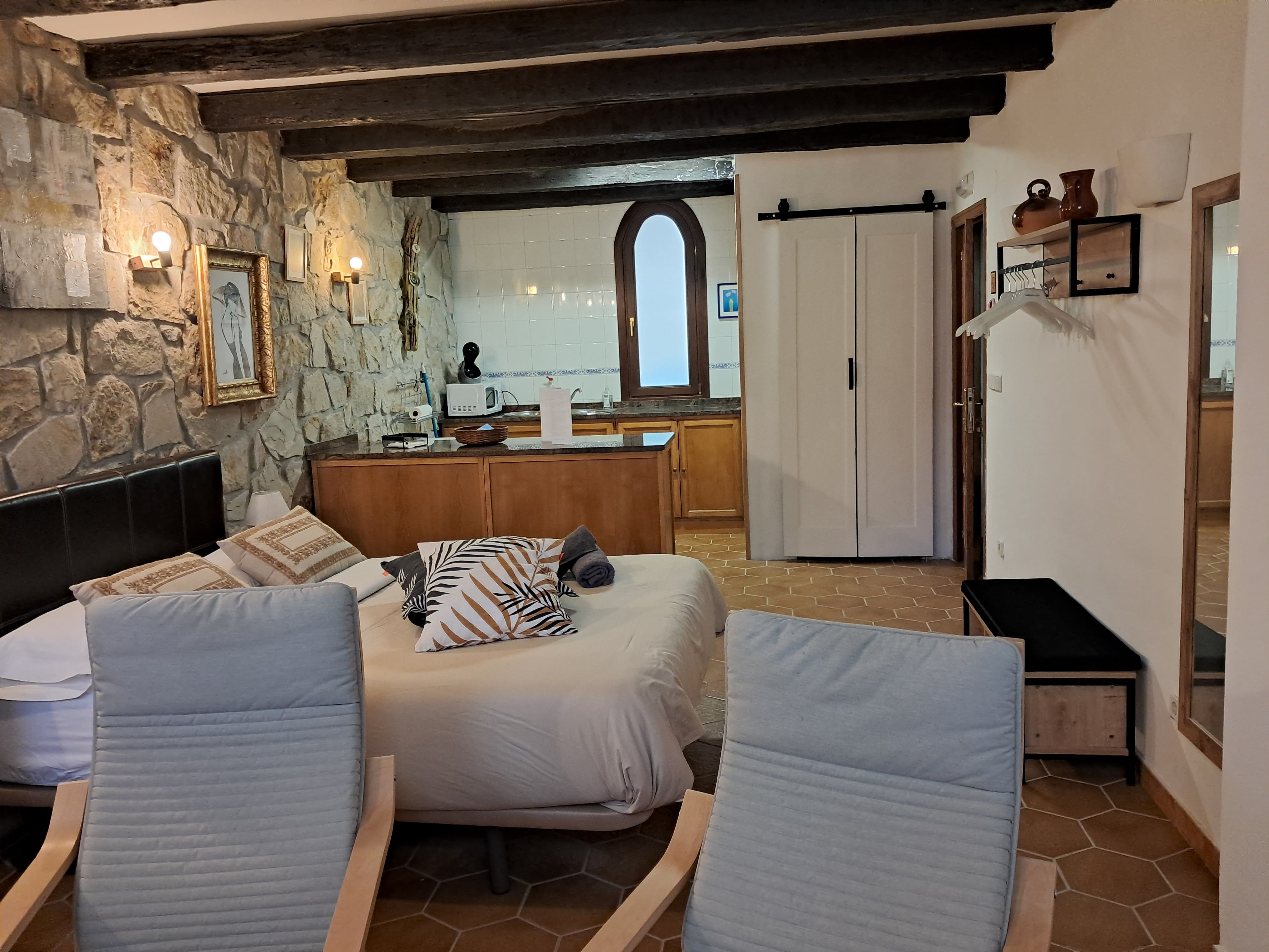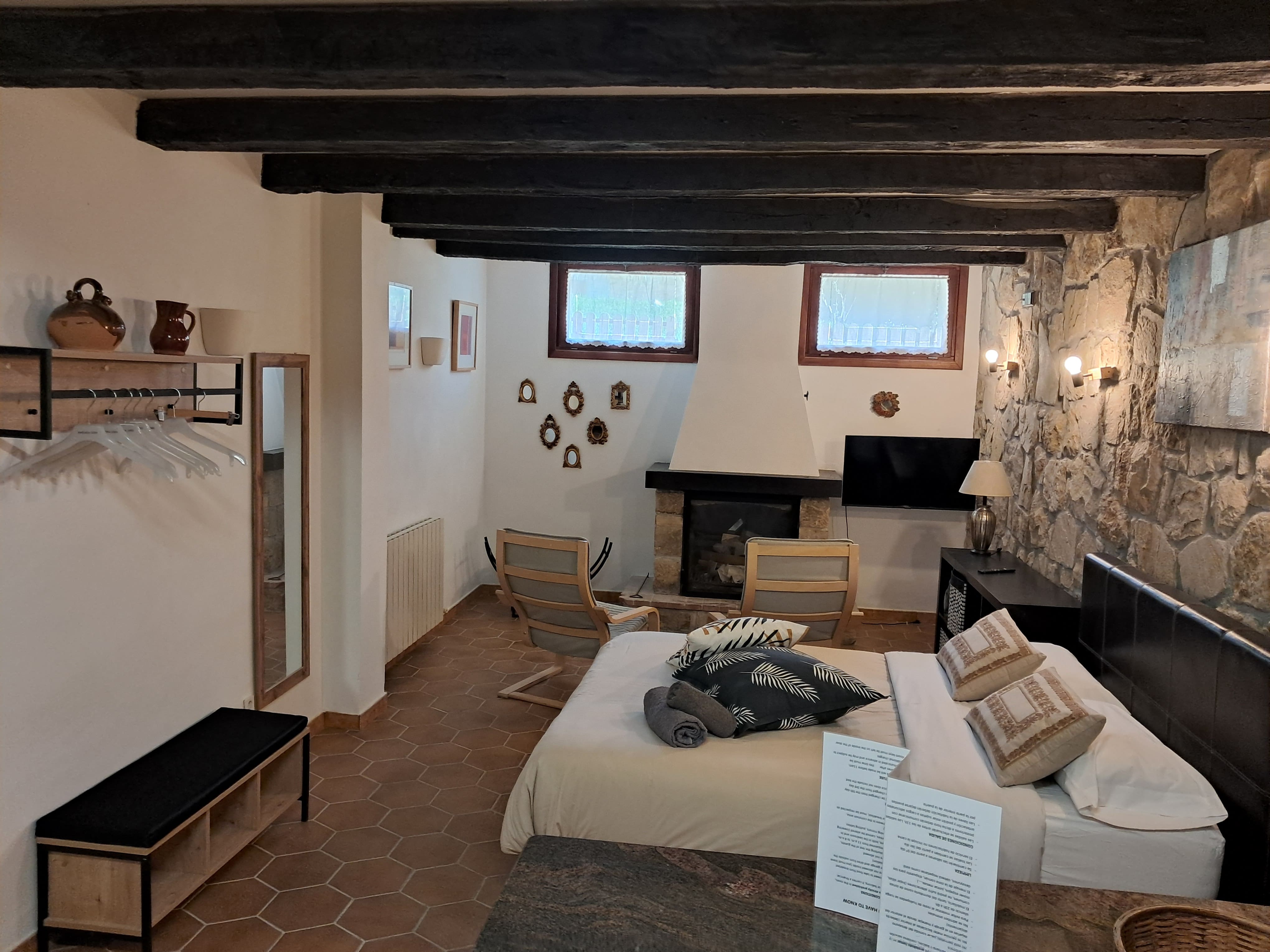 4 habitaciones dobles y 2 dos familiares, todas con acceso a una pequeña sala individua, y equipadas con calefacción y televisión.